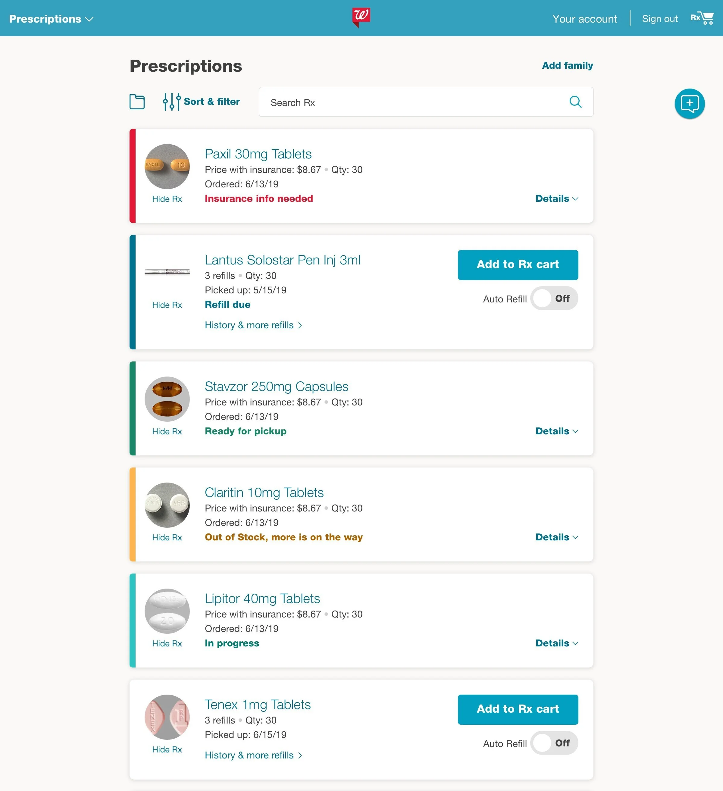 As part of the digital experience, 13 million users refill and manage prescriptions on the website every month. The Rx Refill hub and Status hub lived on different pages which splintered the experience.